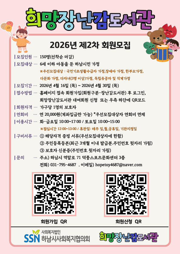 | 2026년 희망장난감도서관 제 2차 대여회원 모집 | |||||