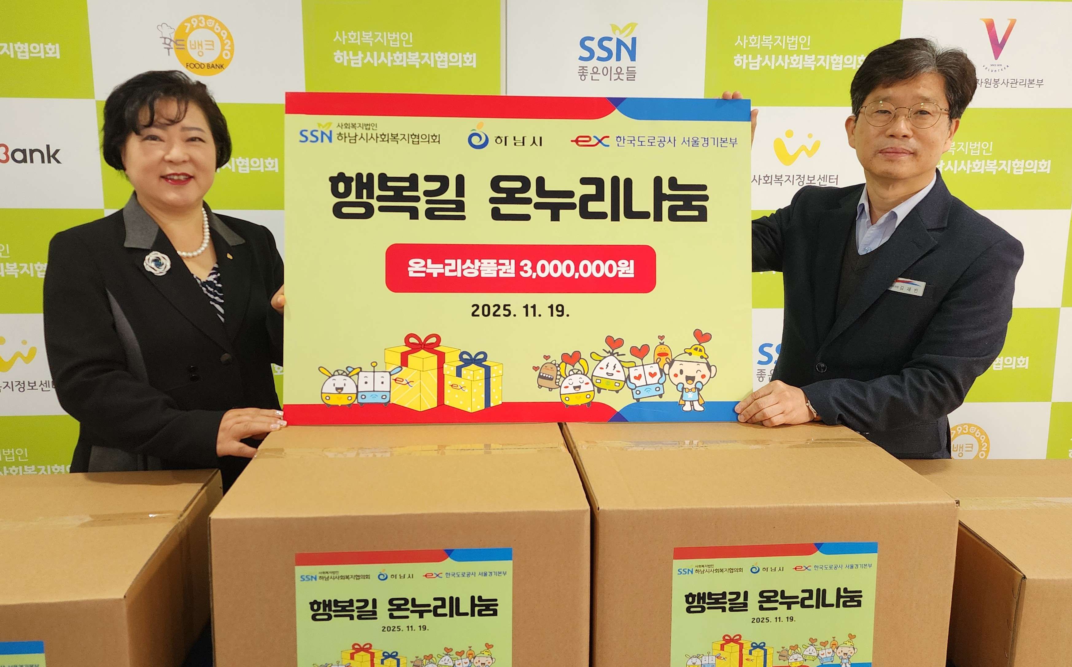 일 시: 2025년 11월 19일 (수) 장 소: 하남시사회복지협의회 사업명: 행복길 온누리나눔 사업 내 용: 한국도로공사 서울경기본부의 후원으로 아동을 위한 생필품박스를 지원하는 행복길 온누리나눔사업을 진행하였습니다. |