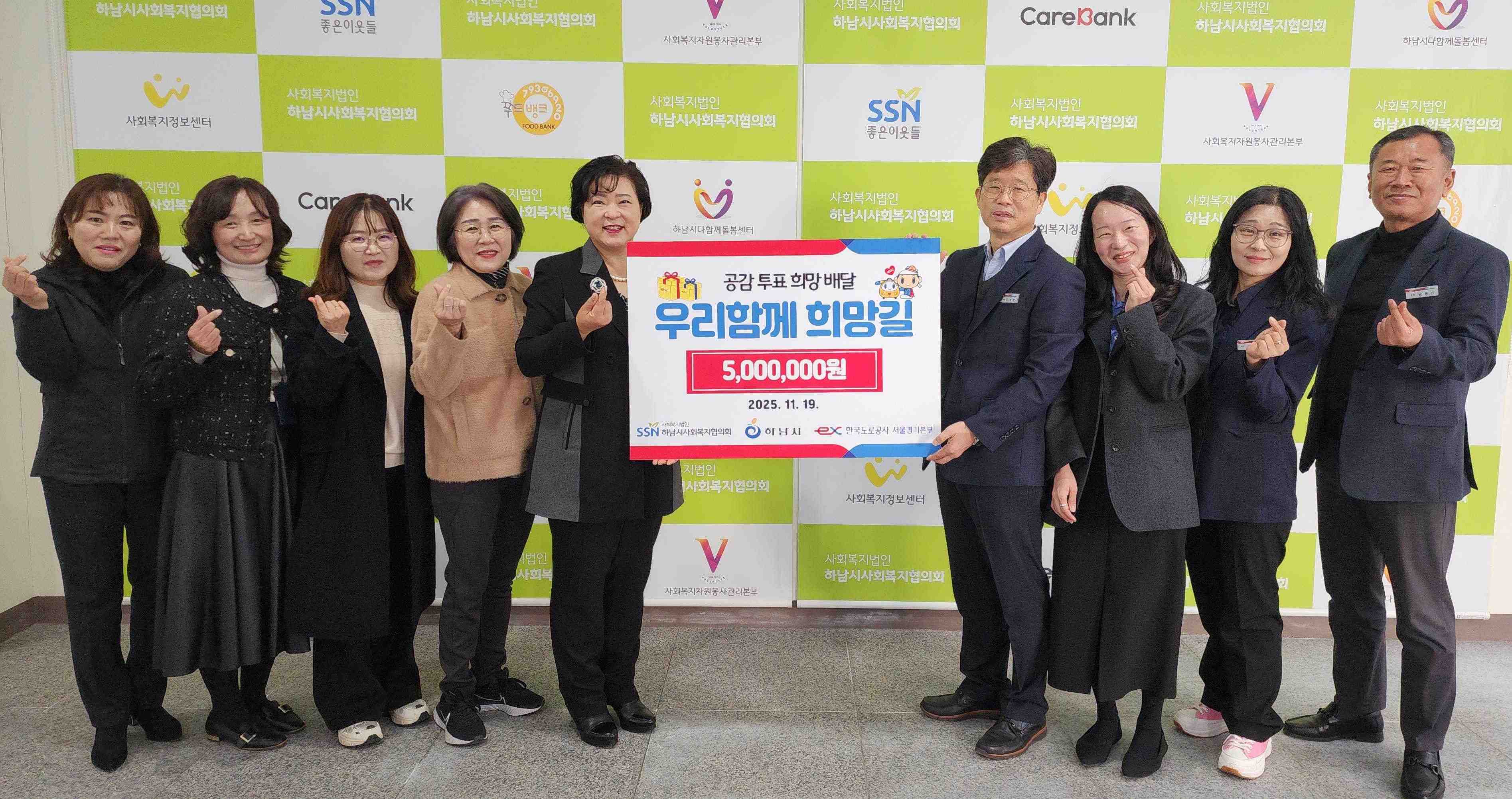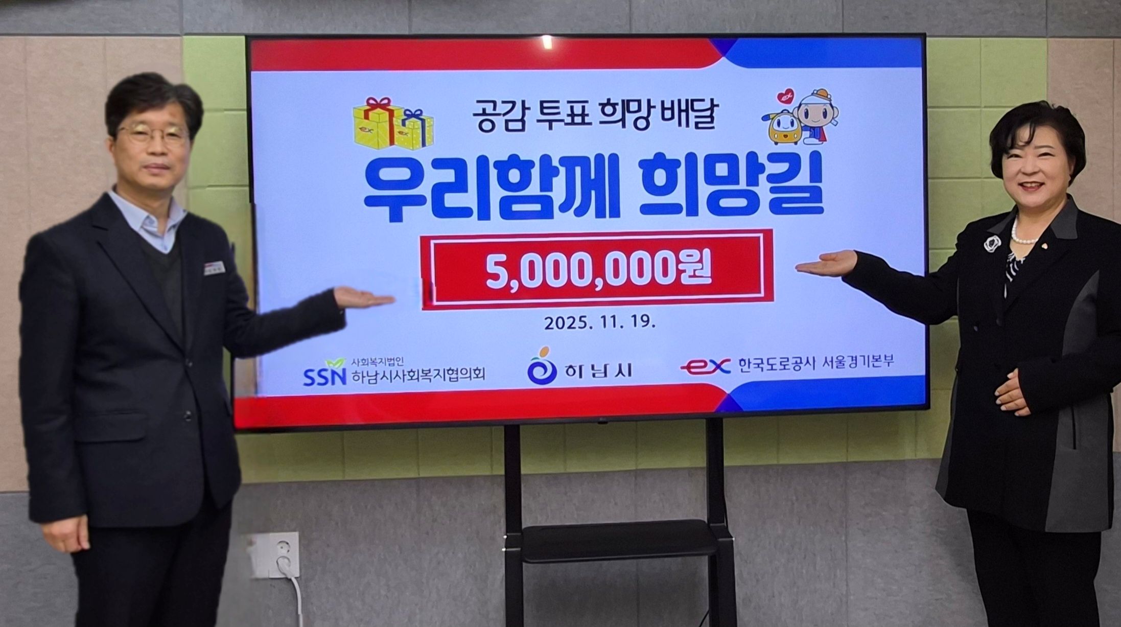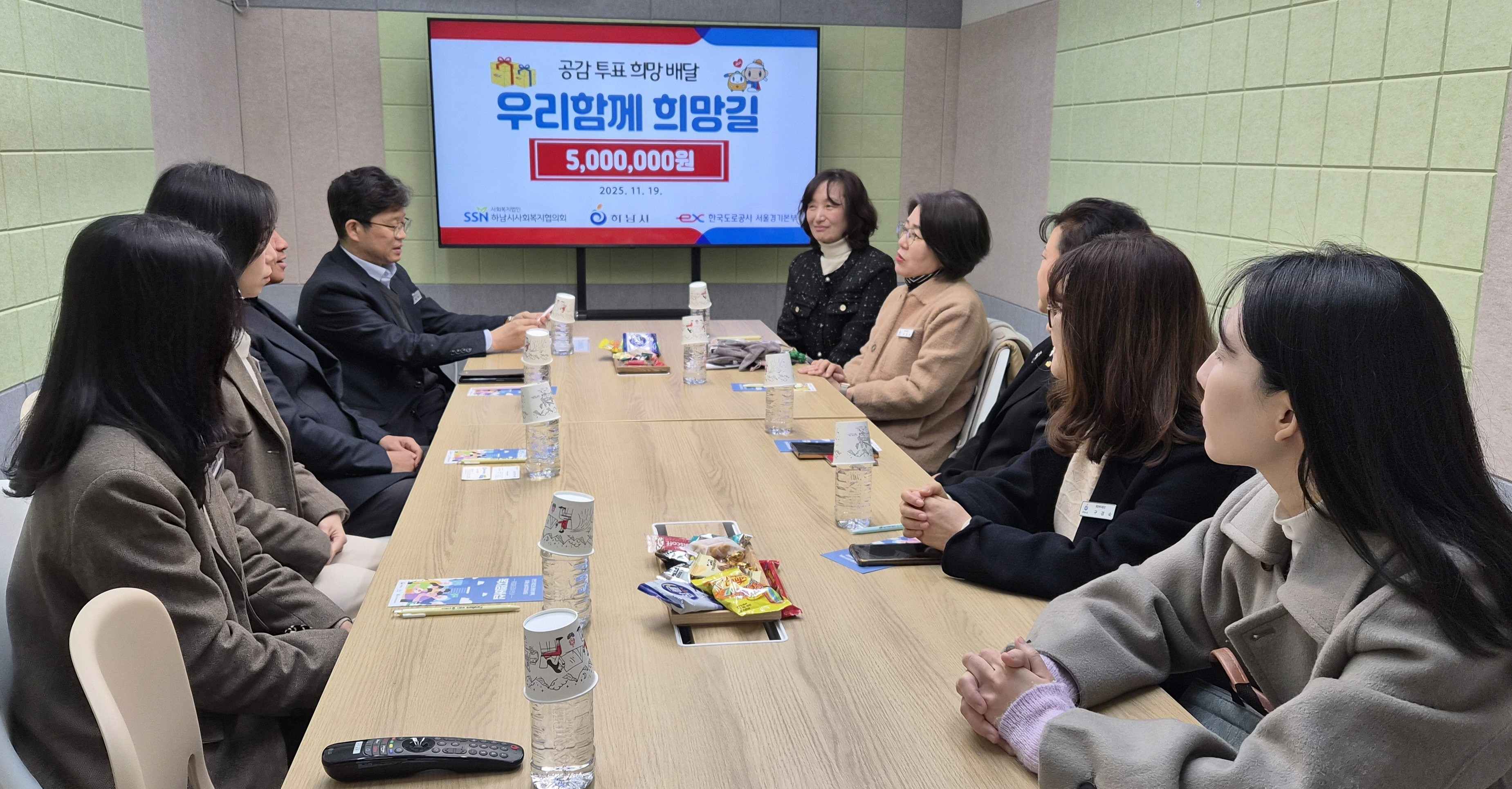 장 소: 하남시사회복지협의회 사업명: 행복길 온누리나눔 사업 내 용: 한국도로공사 서울경기본부의 후원으로 대상자 맞춤형지원을 위한 공감투표 희망배달 우리함께 희망길사업을 진행하였습니다. |