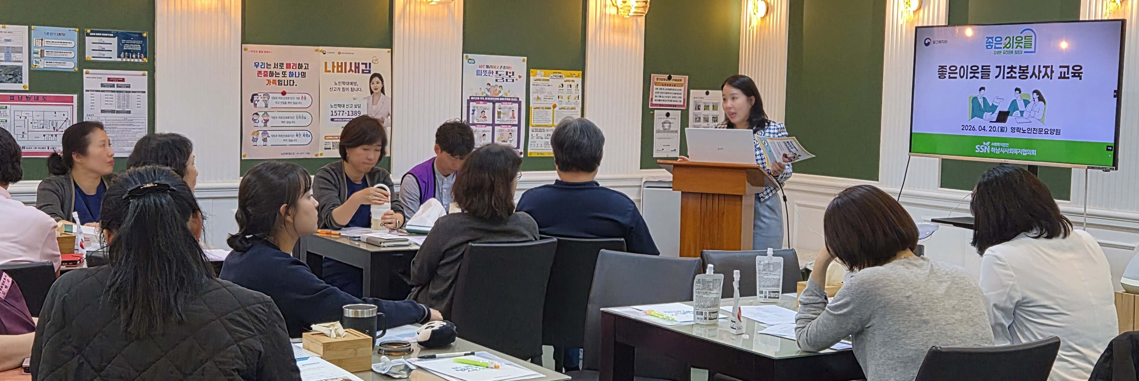 일 자: 2026년 4월 20일 (월) 장 소: 영락노인전문요양원 참석자:30여명 내 용: 복지소외계층 발굴 및 민간자원 연계ㆍ지원 사업인 좋은이웃들 2026년 4차 봉사자 기초교육을 진행하였습니다. |