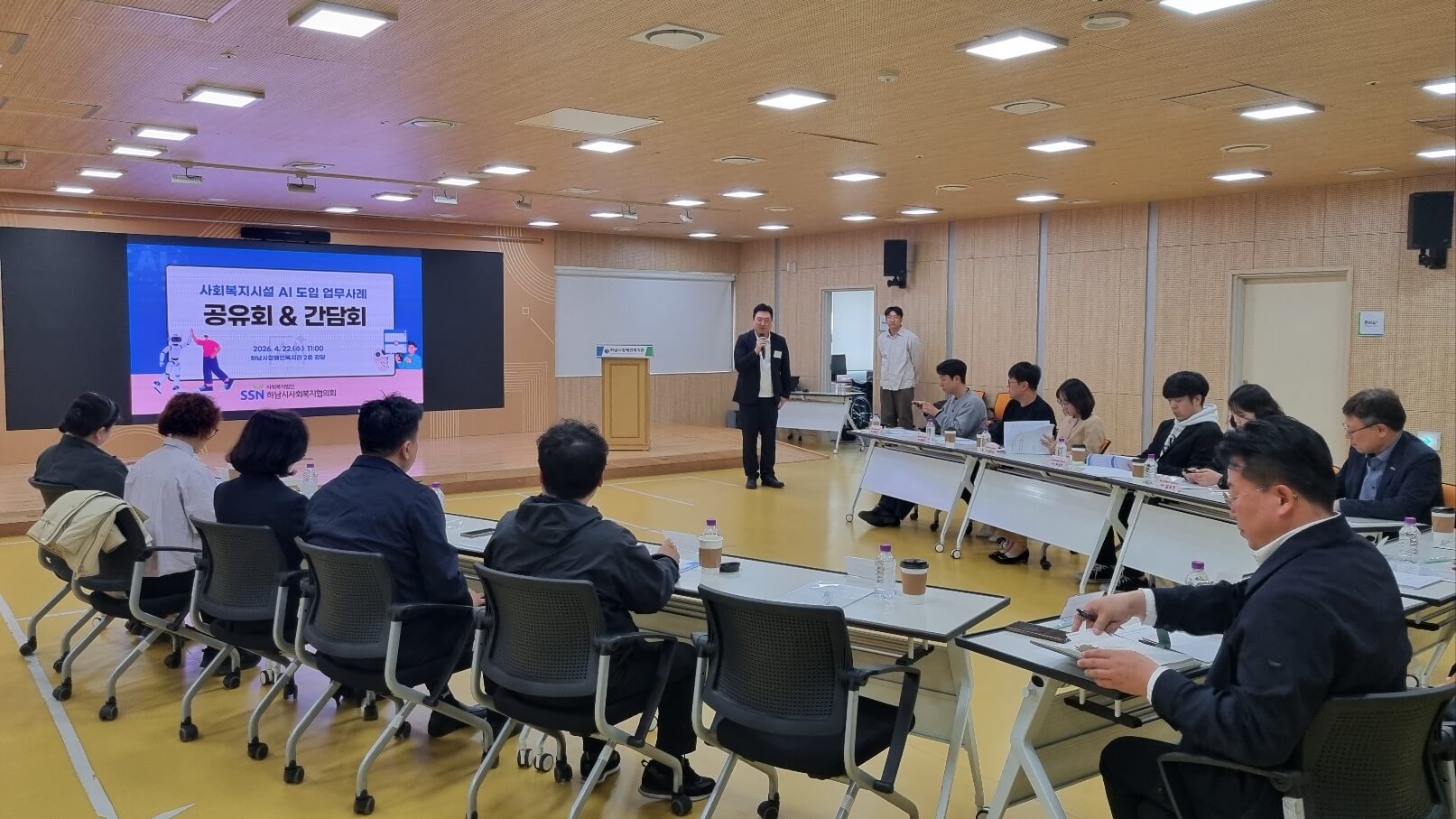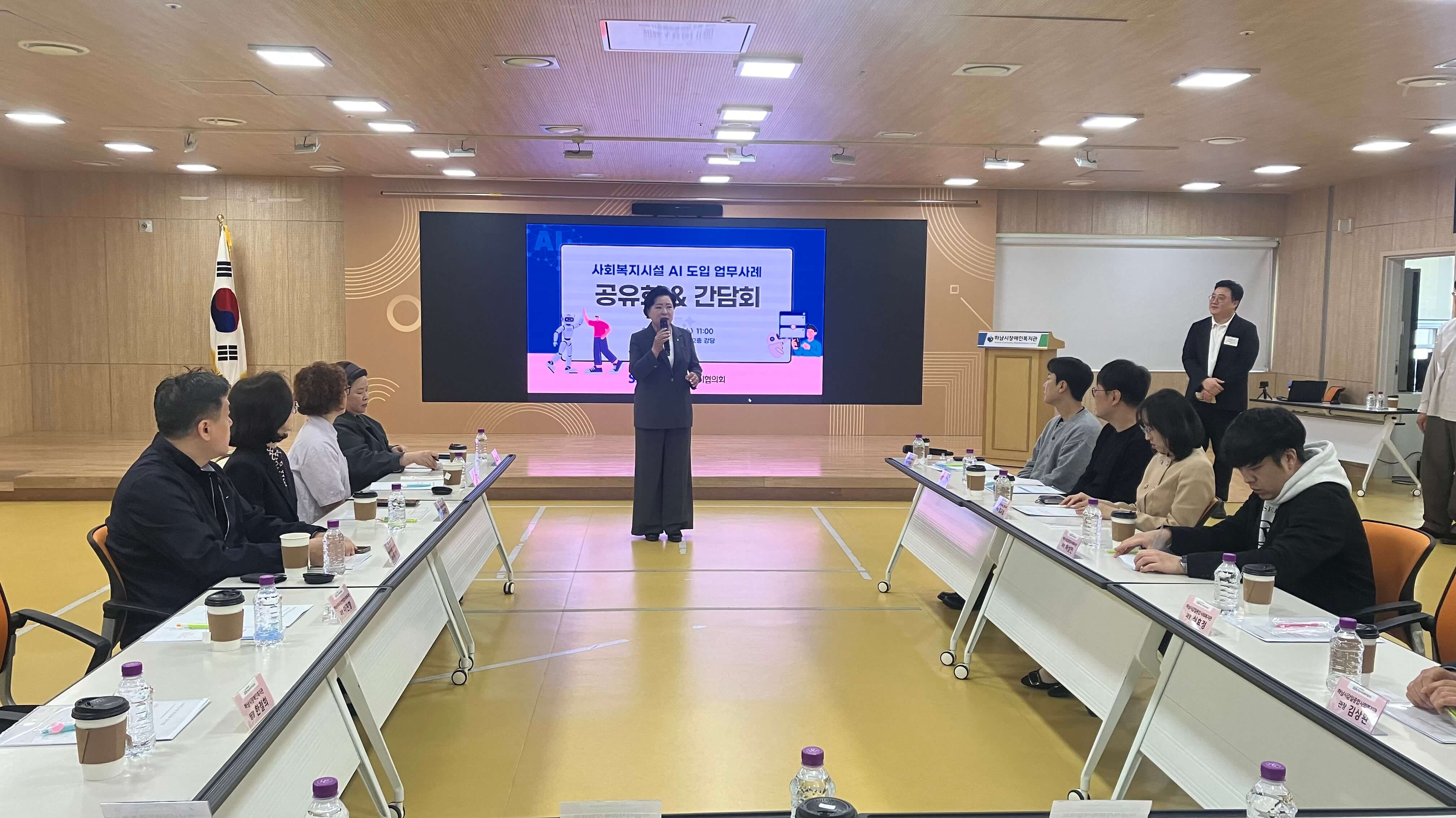 장소: 하남시장애인복지관 2층 강당 참석자: 관내 복지관장, 실무자 20명 내용: 관내 5개소 복지관장, 실무자들과 함께 AI프로그램 도입으로 인한 업무의 간소화와 현장 실천 업무사례 공유·간담회를 진행했습니다. |